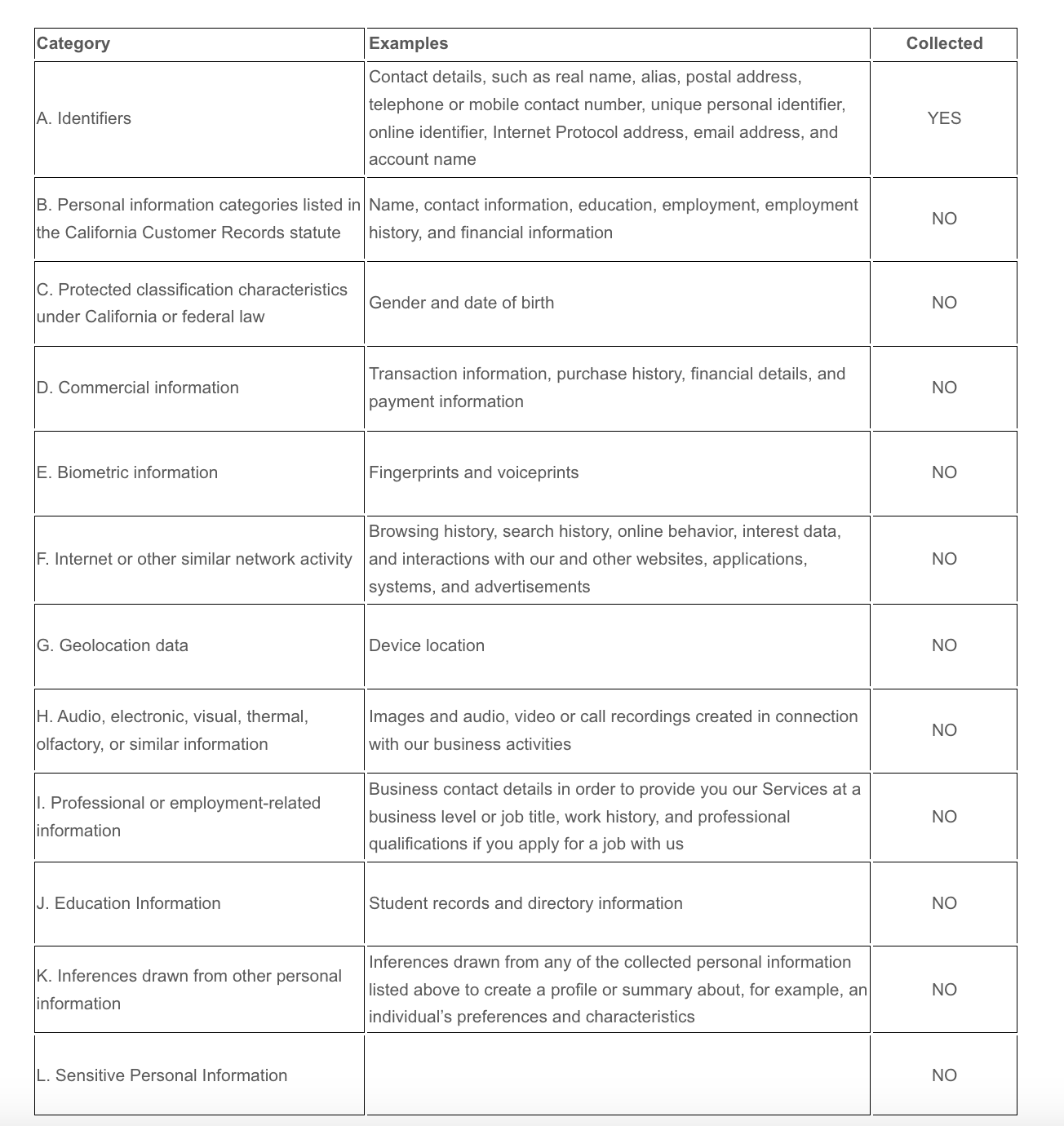 - 从合法渠道收集到的个人信息;